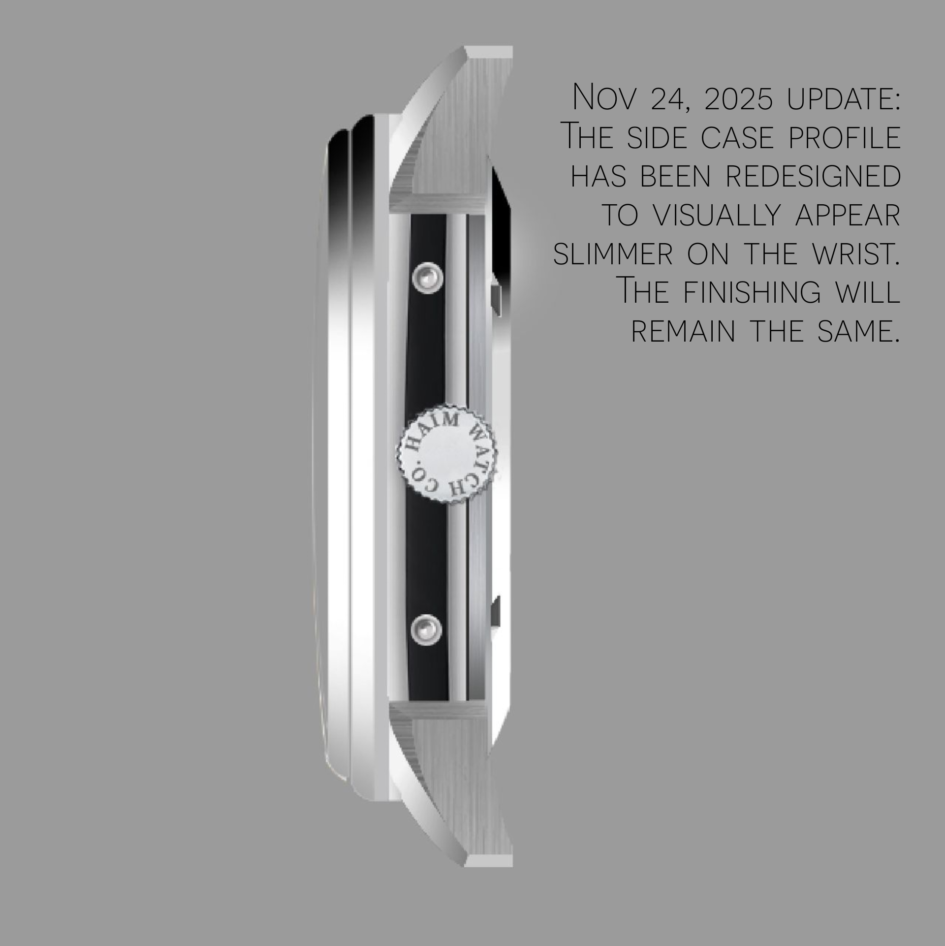 - The hand-finished, Stainless Steel case has an aesthetic that allows Annum to be worn in formal settings, while being versatile enough to transition to casual settings. The case blends both brushed and polished finishes in the right places.